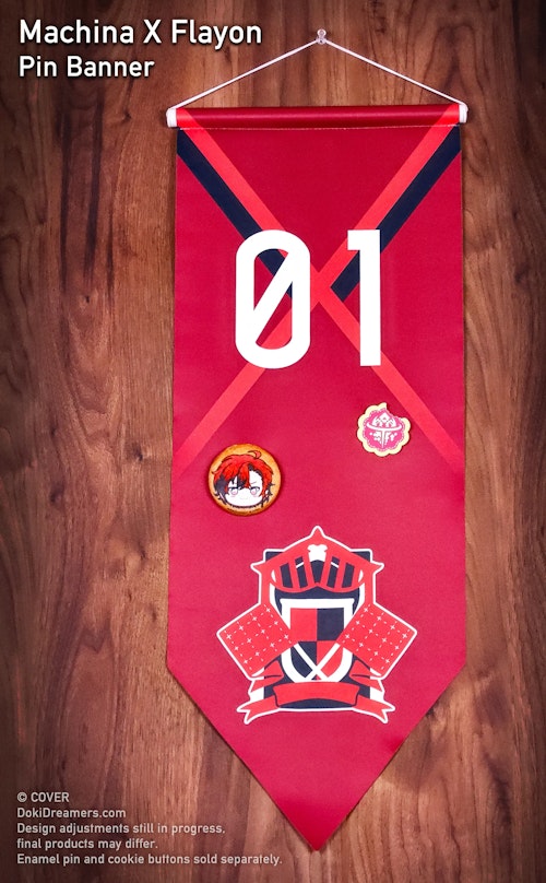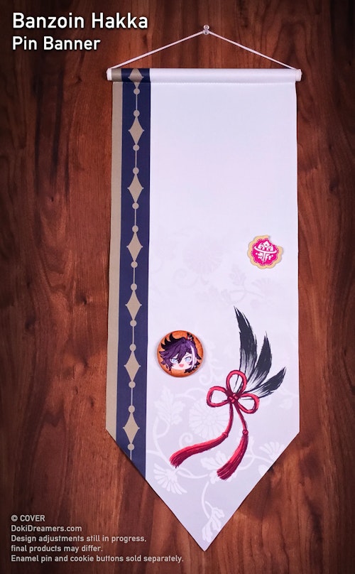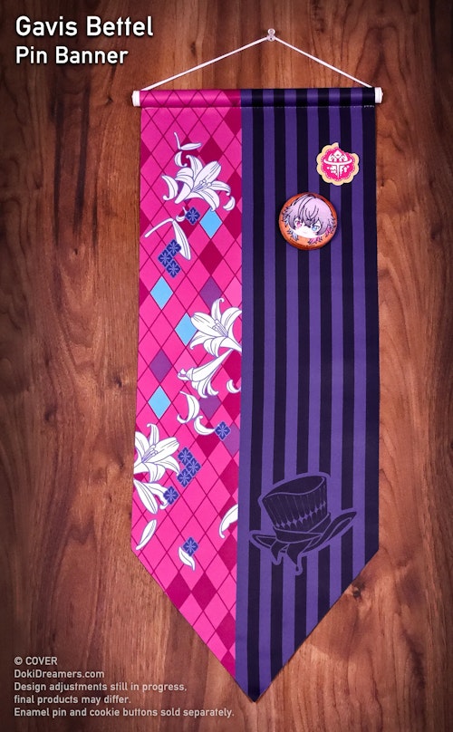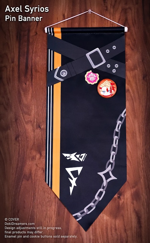 The Doki Dreamers × HOLOSTARS English -TEMPUS- “Guild Hall” pin banner collection is the second product collaboration project between HOLOSTARS English -TEMPUS- and artist-driven merchandise brand Doki Dreamers. Inspired by guild flags, these beautiful and vibrant banners showcase the patterns and iconography of the HOLOSTARS English -TEMPUS- talents’ respective character designs. These fabric banners have 25cm x 60cm of space for holding enamel pins, buttons, and other decorative elements, or can be displayed on their own as wall decor.